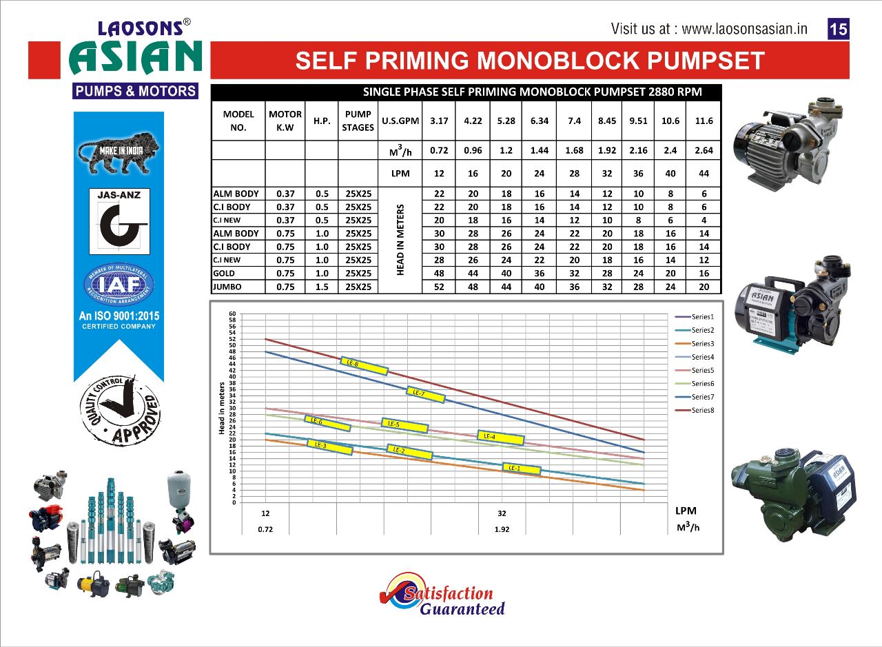 Laosonsasian Self Priming Mono Set Pump (Cast iron Body) " Alto, Dicor & Gold Series " - are specially designed and developed to meet water requirements of various needs such as residential bungalows,small farms etc.